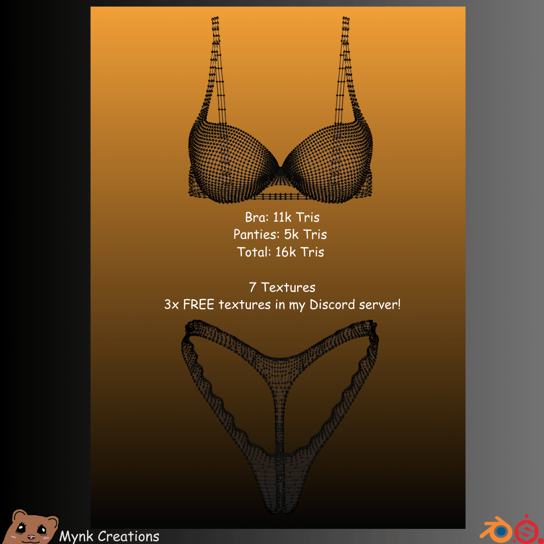 16k Tris total, 7 Textures included! There is an extra 4 free textures in my Discord server under the "free" section :)