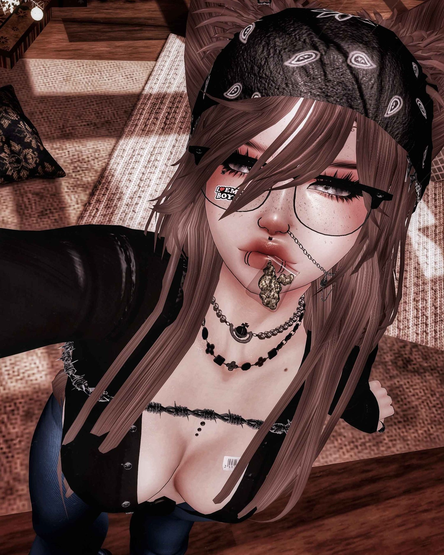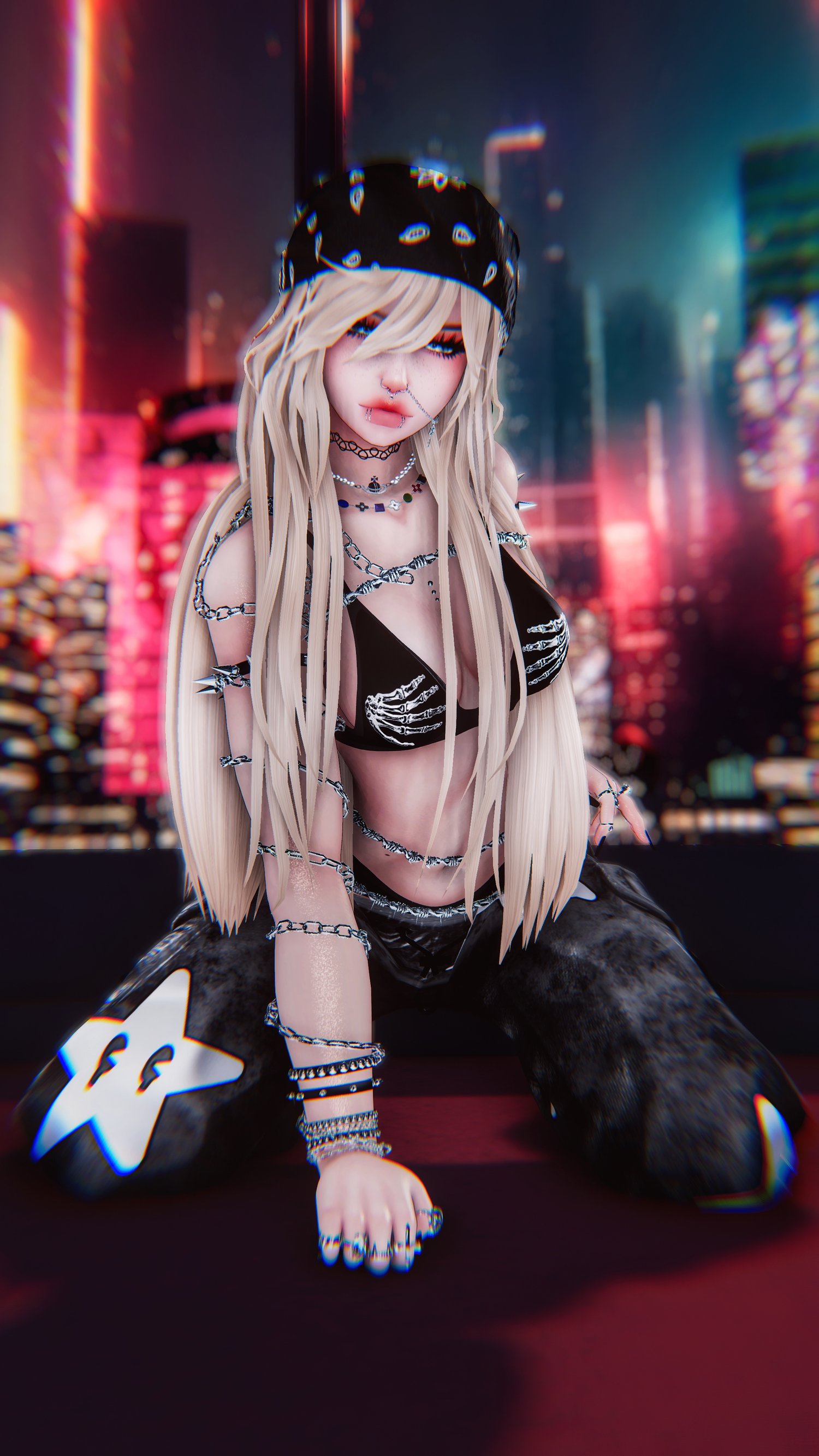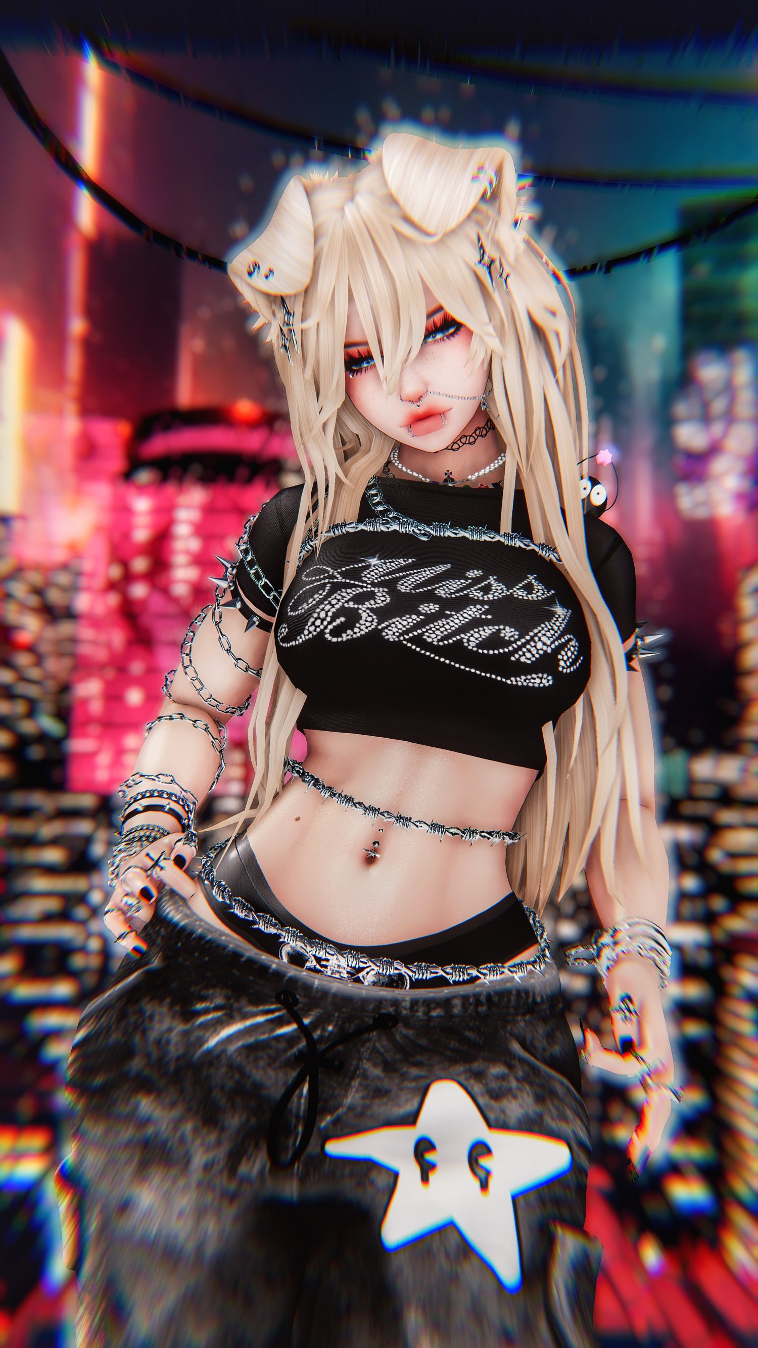Accessories: Arm spikes, band-aid, (3) hats, bear backpack, body stickers, chest bag, (2) glasses, leash, leg warmers, leg wraps, mask (3) options, clover necklaces, ripped gloves, soot sprite, 90s tattoo choker, arm chain, body wires, bracelets, nose chain, rings, (3) animal ears, (3) animal tails, horns.