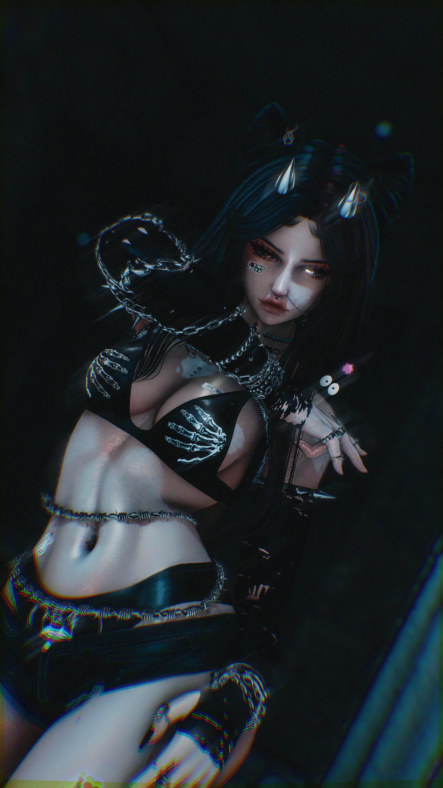 Body Mods: Skin tones from pale to dark. Overall avatar lighting. Eye colors change individually (heterochromia). All hairs can either be one-color or split-dye! Hair emission slider. (3) Head sculpt changes.